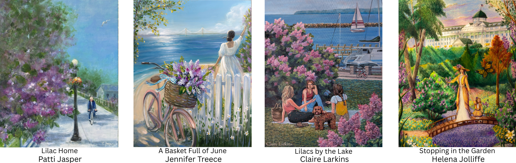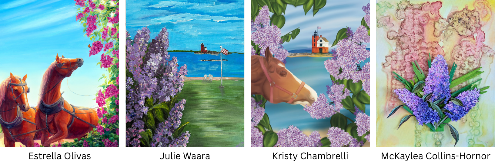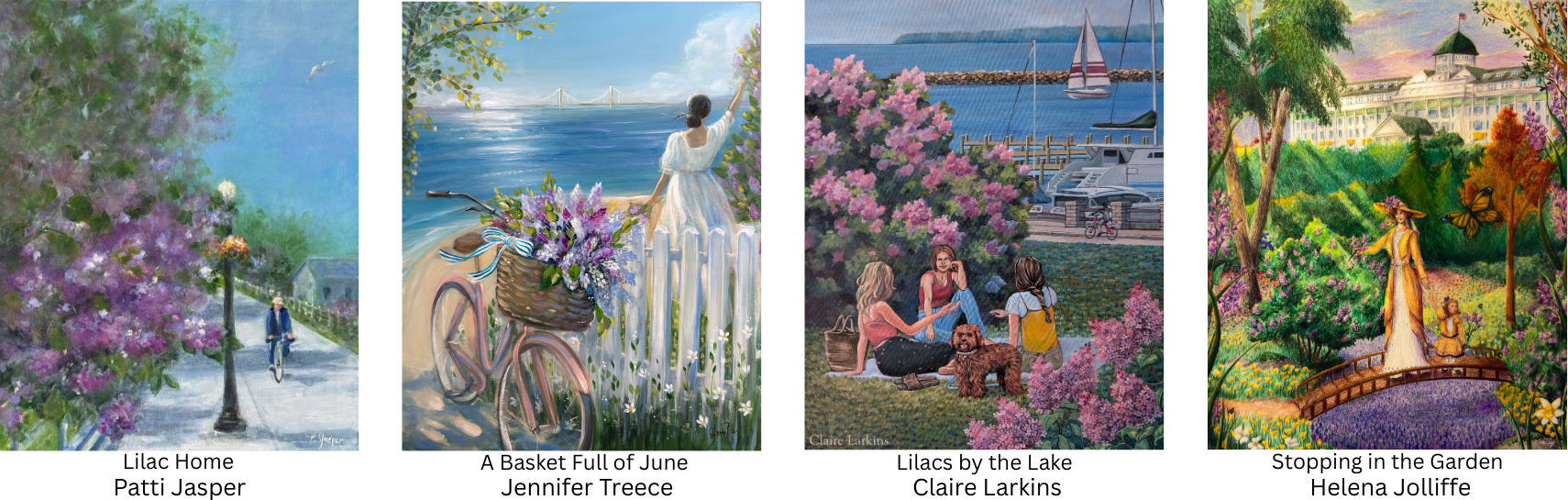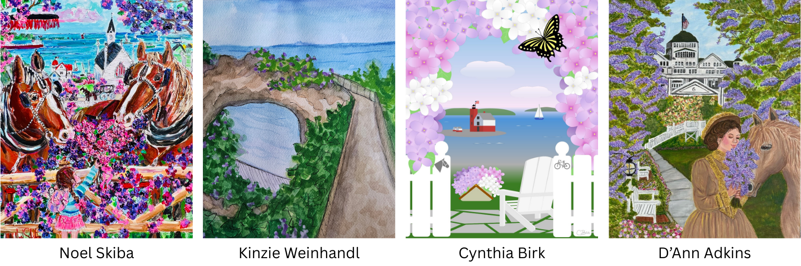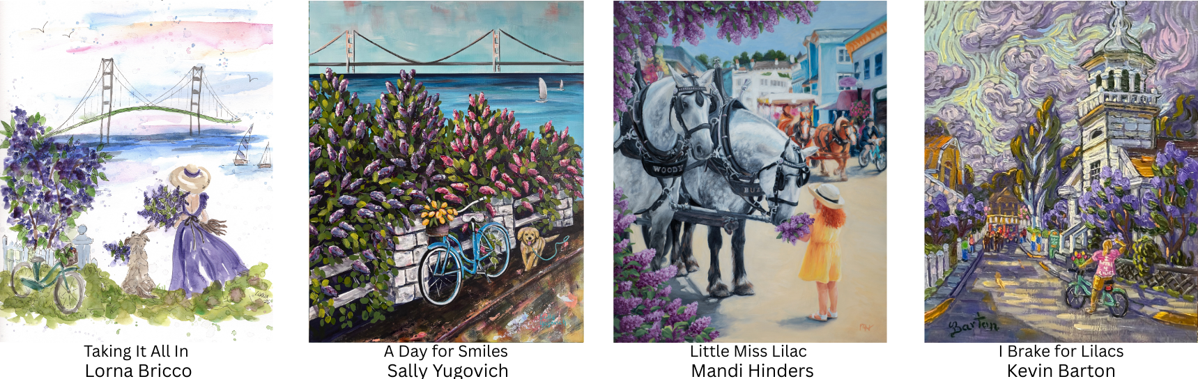 The Lilac Festival Poster Contest is an annual contest celebrating creativity, inviting artists from across the country to showcase their love for Mackinac Island and interpret that year's theme through different artistic mediums. The winning design is proudly displayed throughout the island during the Lilac Festival.
